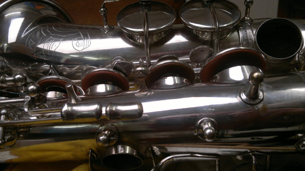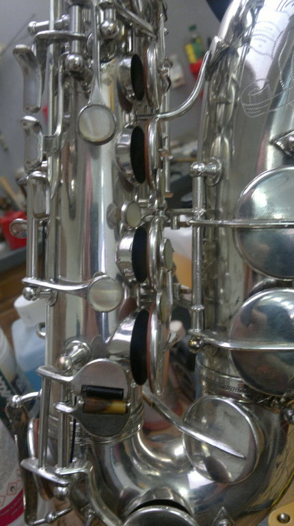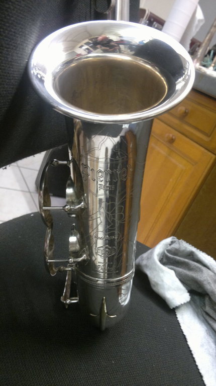 Voilà encore une marque de sax que l'on rencontre fréquement mais dont on ne connait pas grand chose... Pierret a fabriqué de 1906 à 1971. Ici un modèle Super 8 fabriqué à partir de 1938, on peut y voir différentes innovations comme la commande Sol# à droite et à gauche, double Mib etc etc